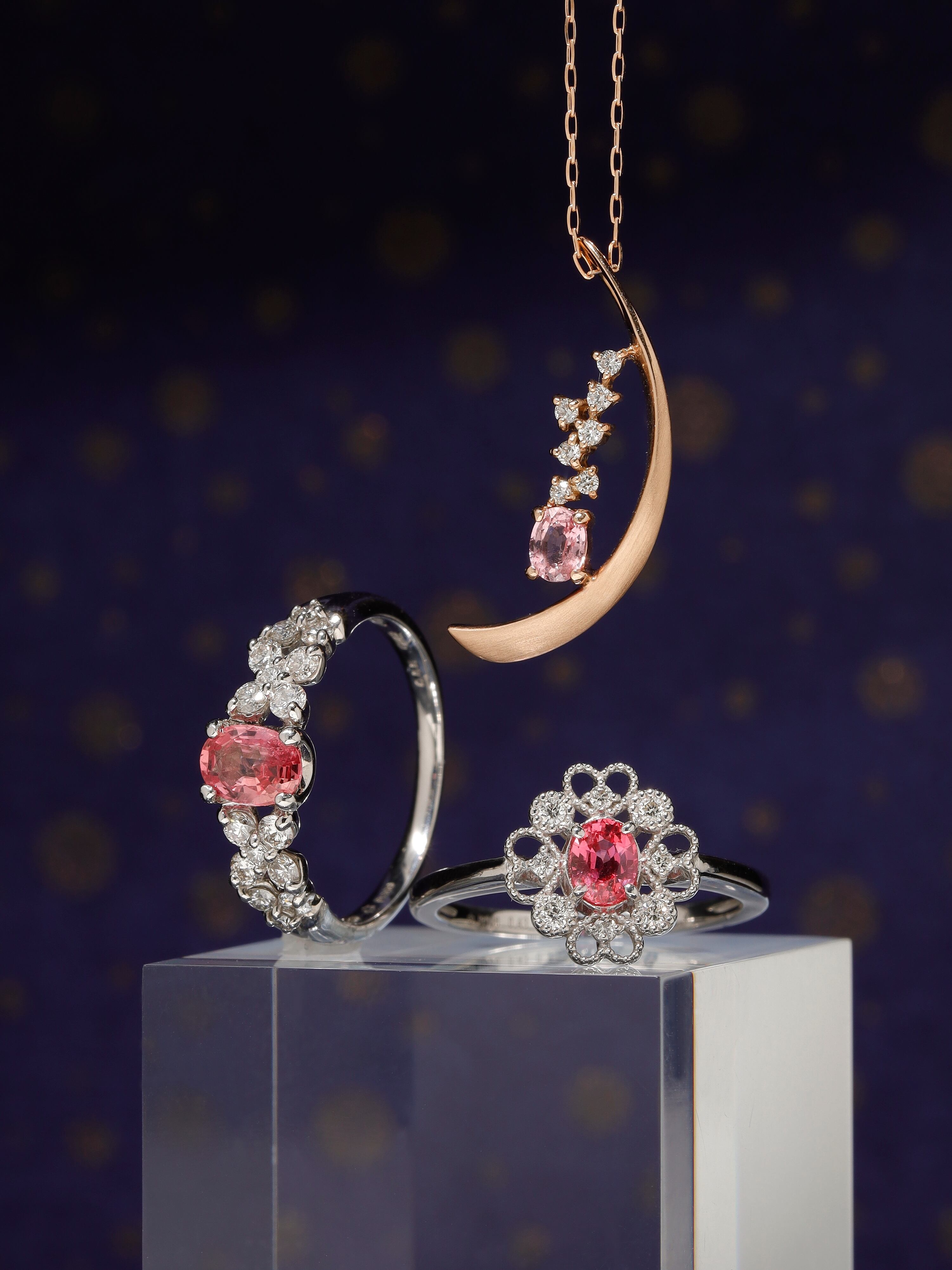 Material - K18(PG) / パパラチアサファイア : 0.243ct / ダイヤモンド : 0.060ct