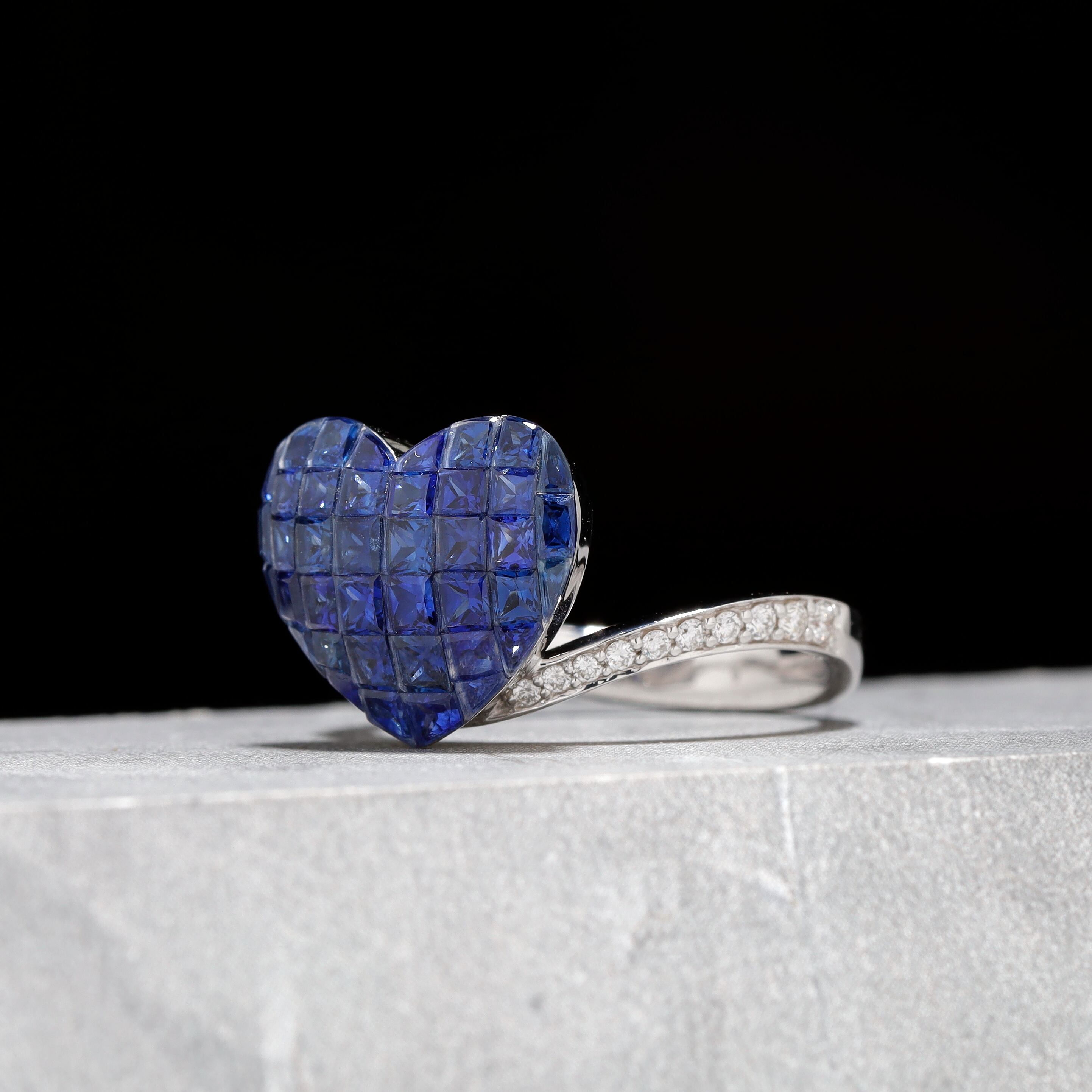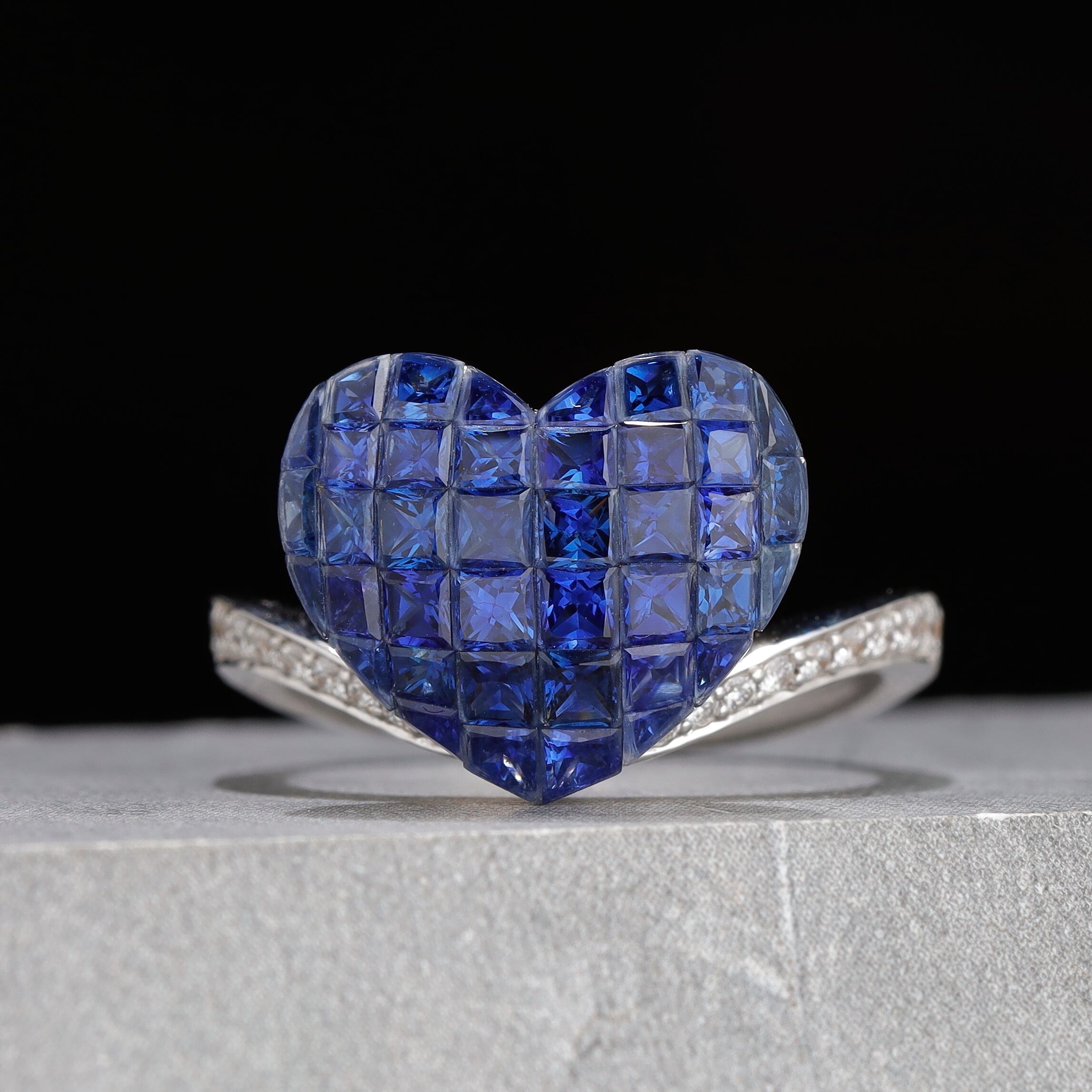 ミステリーセッティング サファイア リング K18(WG) / 3.950ct / DA 0.190ct