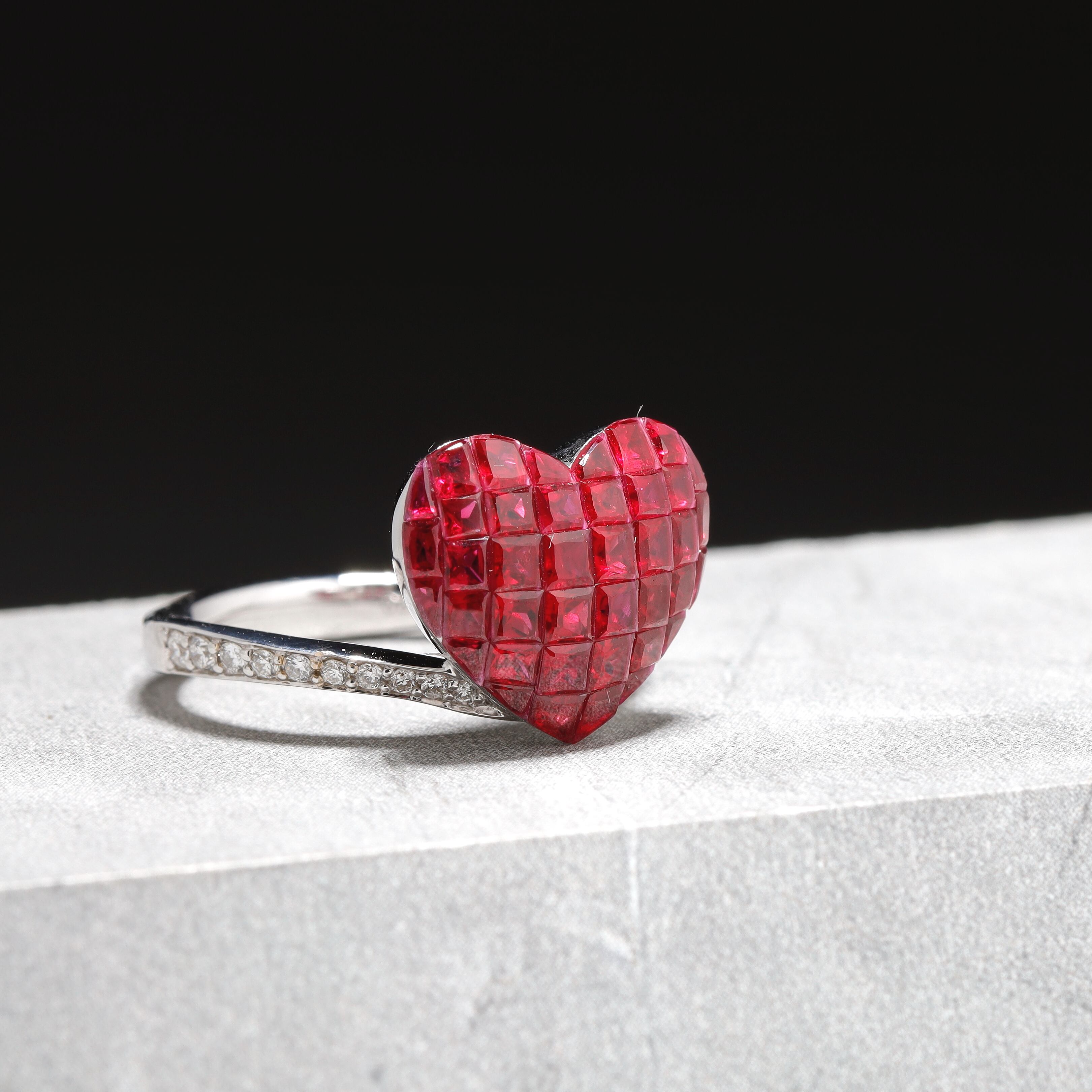 ミステリーセッティング ルビー リング K18(WG) / 3.430ct / DA 0.200ct