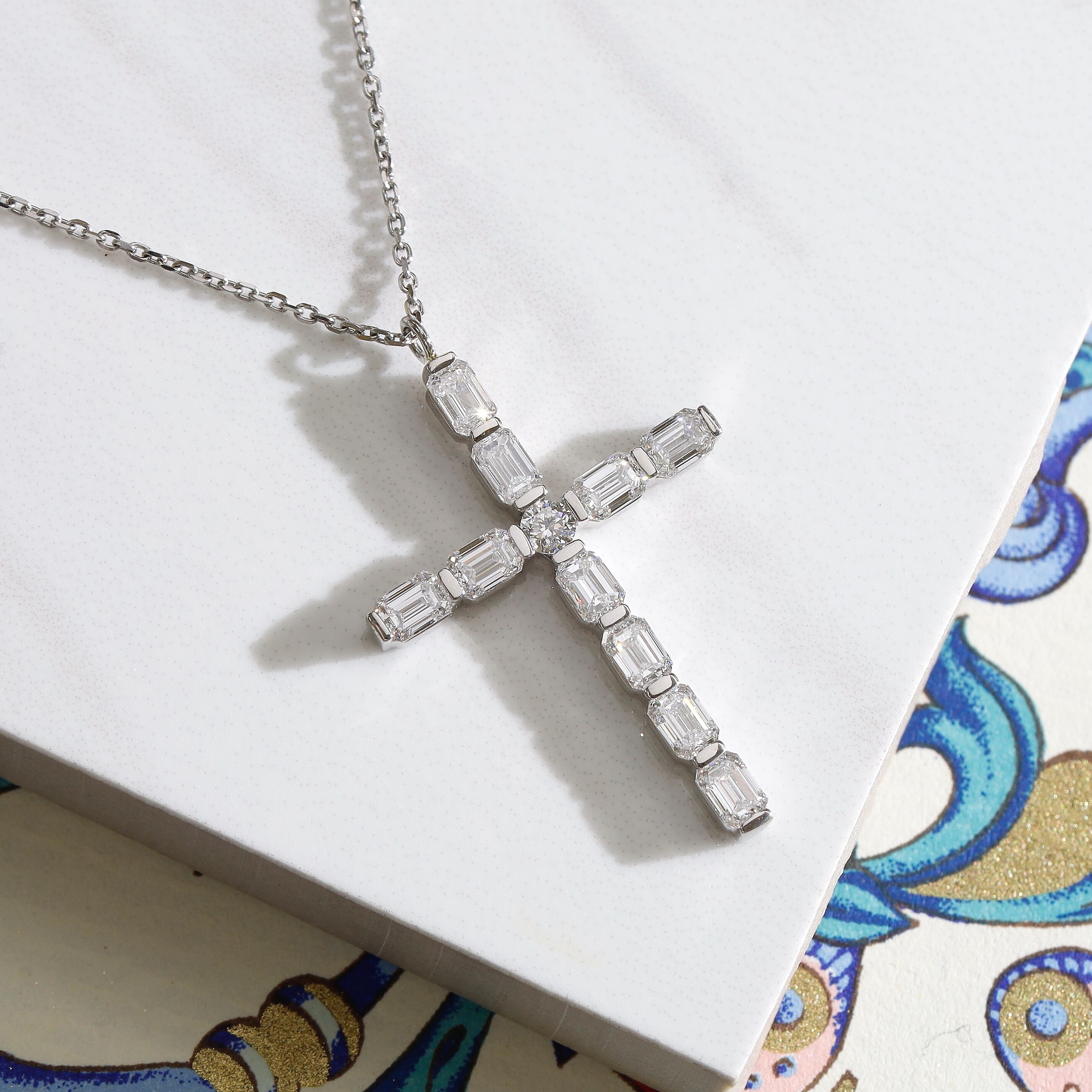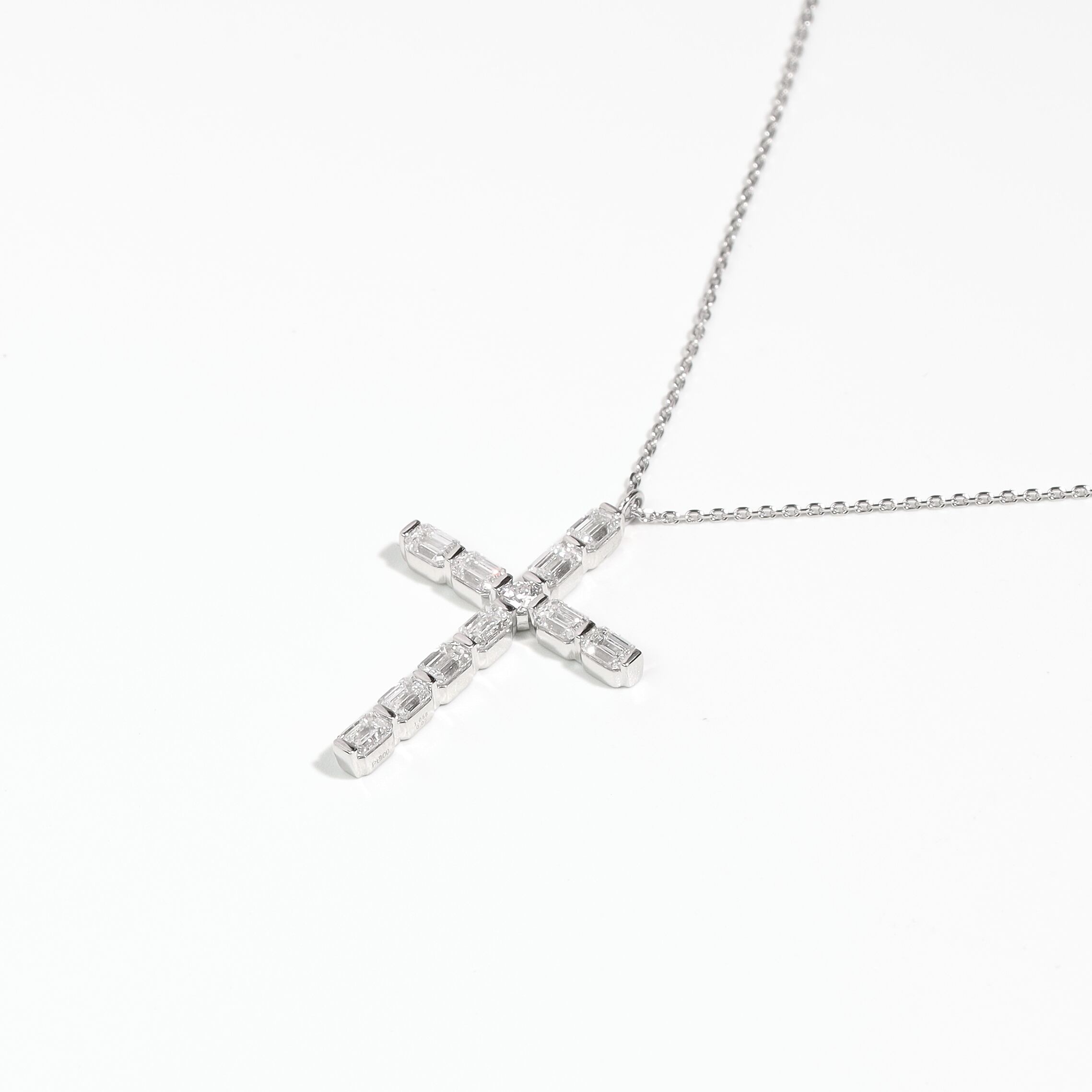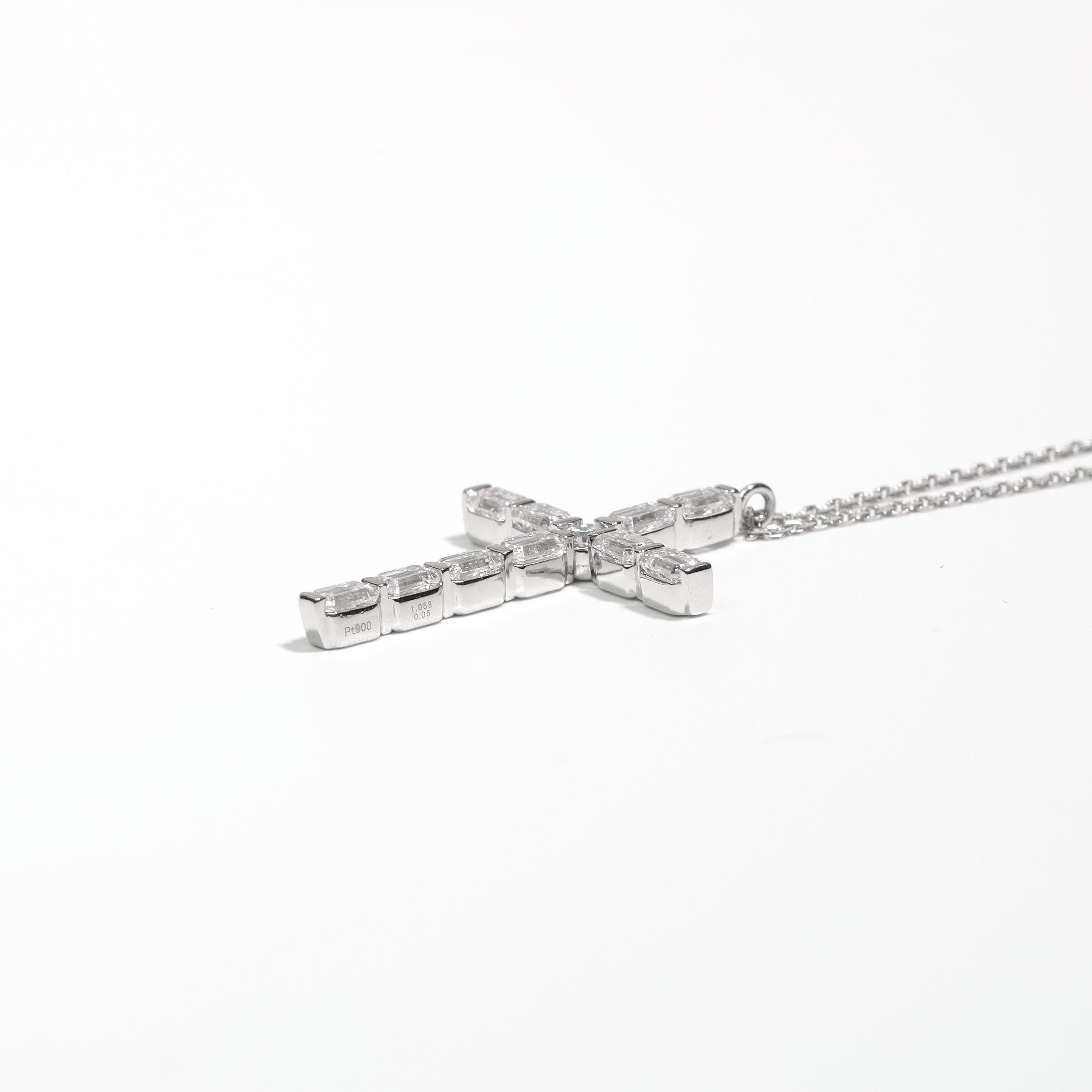 クロスデザイン エメラルドカット ダイヤモンド ネックレス VVS2~VS1 Pt / 1.058ct / 0.050ct